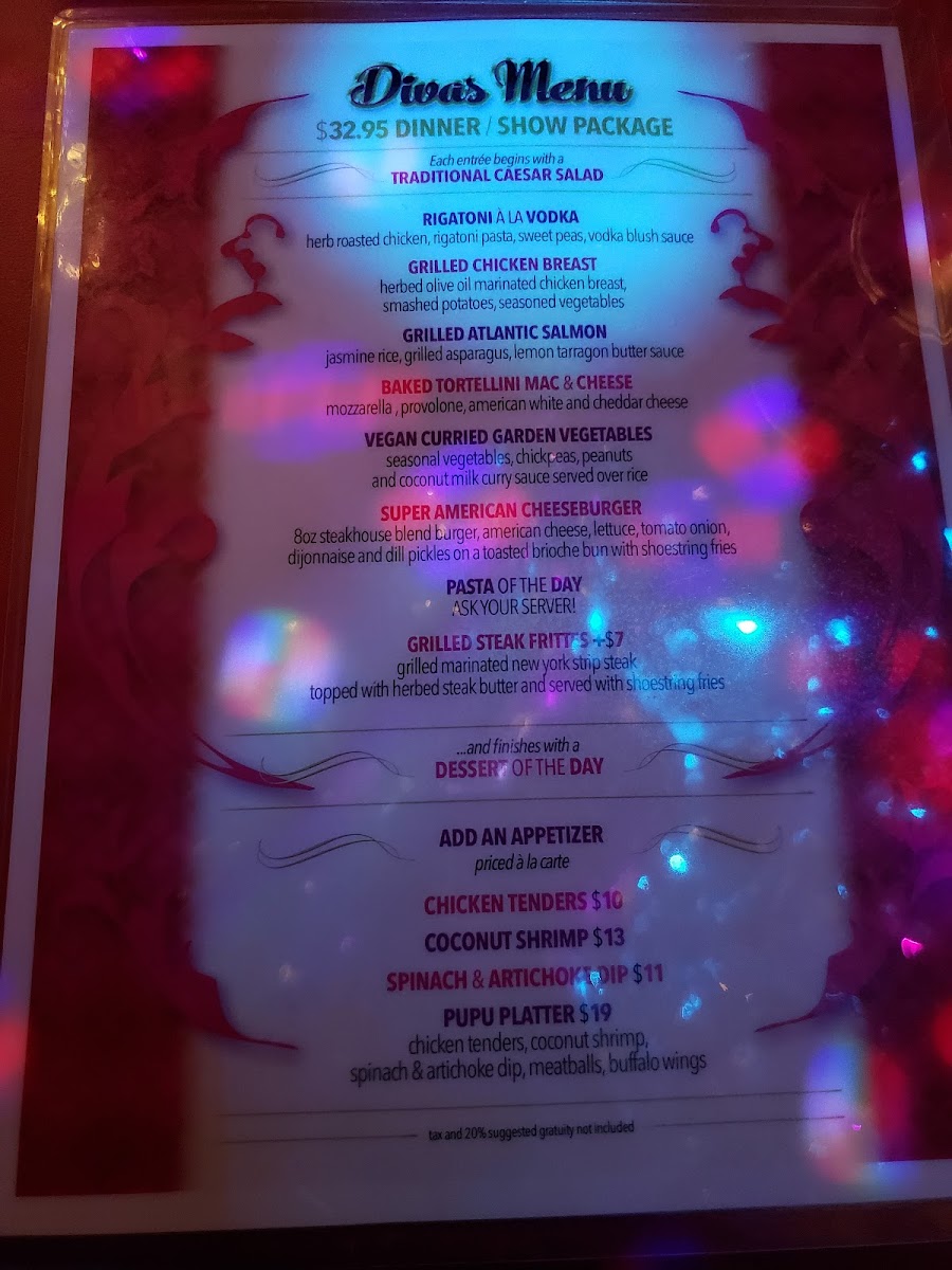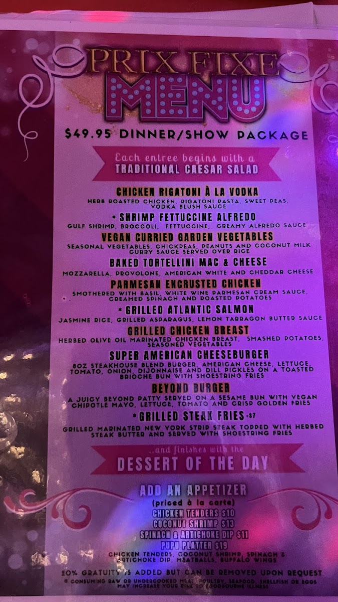 Included 3 Course Dinner and Show! (tax, tip and drinks additional)